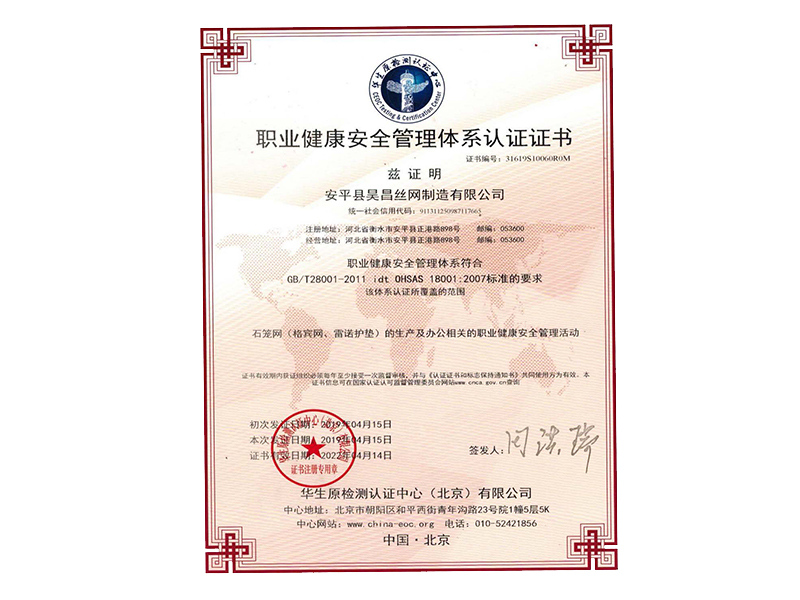 安平縣昊昌絲網(wǎng)制造有限公司成立于2006年,占地40000平方米,擁有生產(chǎn)設(shè)備二十余臺,率先引進流水線作業(yè),是一家專業(yè)從事石籠網(wǎng)、格賓網(wǎng)、雷諾護墊生產(chǎn)的企業(yè)。經(jīng)過不懈的努力,公司榮獲了省優(yōu)產(chǎn)品、政府質(zhì)量獎等眾多殊榮并擁有多項專利,積累了非常豐富的經(jīng)驗和大量的專業(yè)化技術(shù)人才。我們已率先通過了ISO9001質(zhì)量管理體系認證,并參與了三峽,南水北調(diào),三江治理等大型堤坡防護及水利工程,歡迎來電來公司洽談。